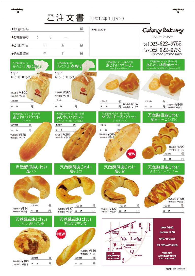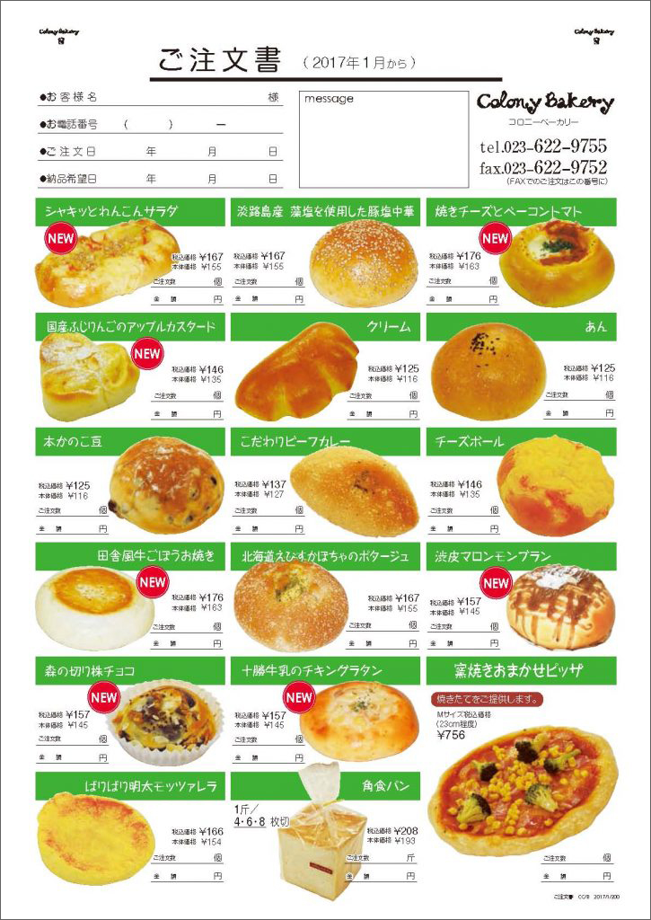 ご注文はコロニーベーカリーまで 023–622–9755
