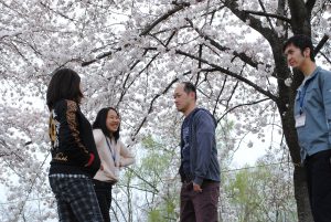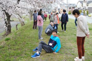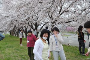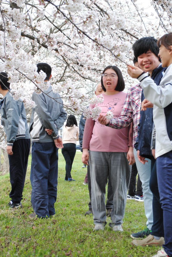 4月15日、今年度最初の行事のお花見と新人さん(利用者・職員)の歓迎会が催されました。当日はあいにくの雨模様でしたので、後日もう一回みんなで桜の木の下を散策しました。