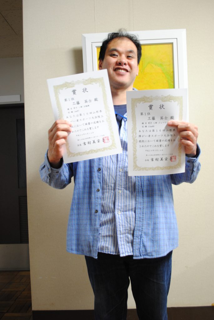 毎年コロニーセンターからも出場している『山形県障害者スポーツ大会』が開催されました。今年は陸上競技に5人の参加がありました。