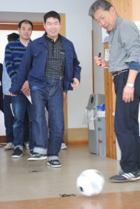 競技名 『PK合戦』 素晴らしいシュートが続きます。ボールのセットは課長の役目