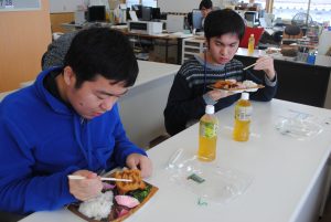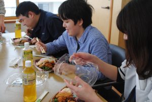 今日の昼食は生協のお弁当です。みんなで食べると一層美味しいですね~!