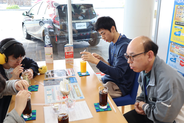 このメンバーが中心になって、作業に当たりました。キャップを洗浄し、860個ごとに袋詰めしました。丁寧な仕事ぶりに、店長さんからは感謝の言葉を頂きました。