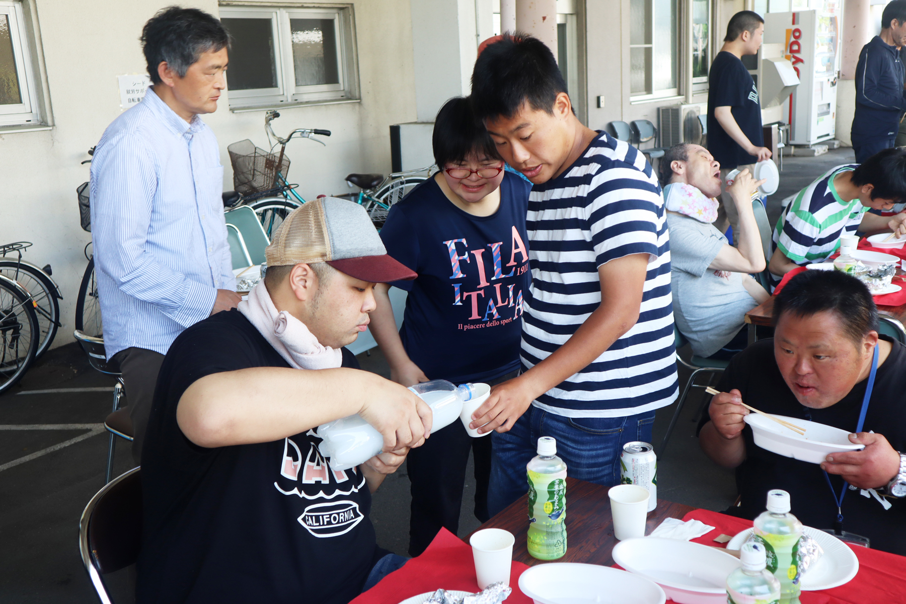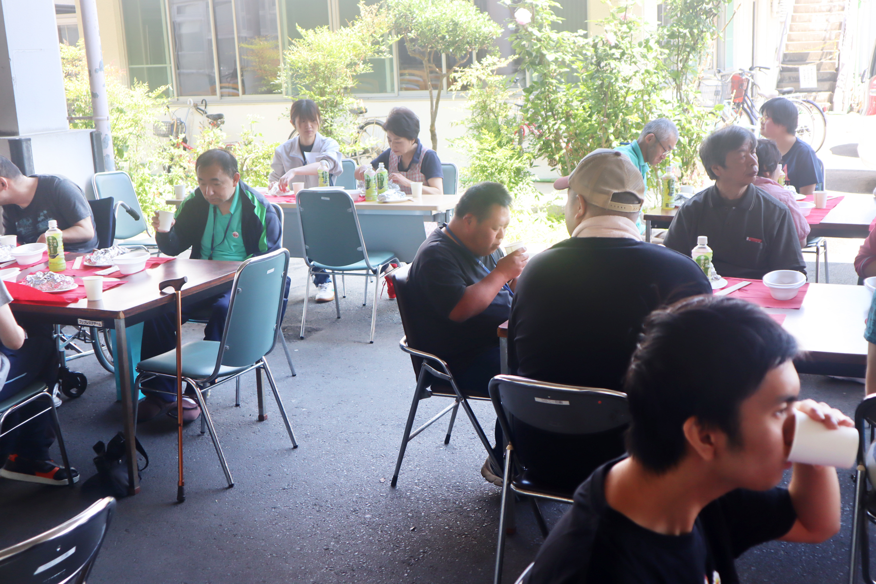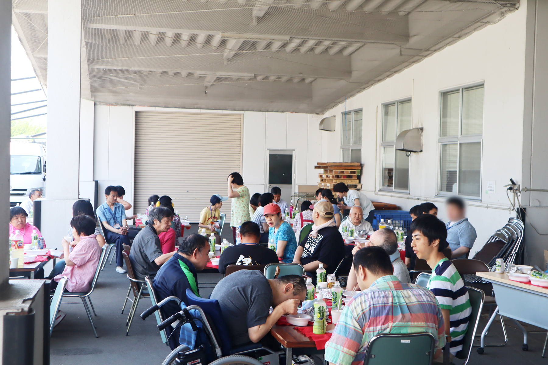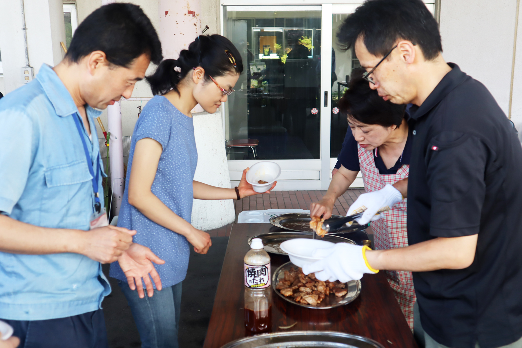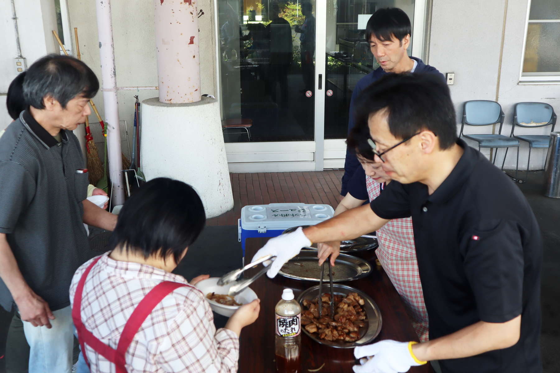毎年この季節に、コロニーセンターでは『バーベキューパーティー』を開催します。冷たいビールや酎ハイ、ジュースで乾杯です。