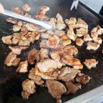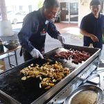 いこいの広場ではテーブルセッティングの準備が始まります。大きな鉄板が用意されます。