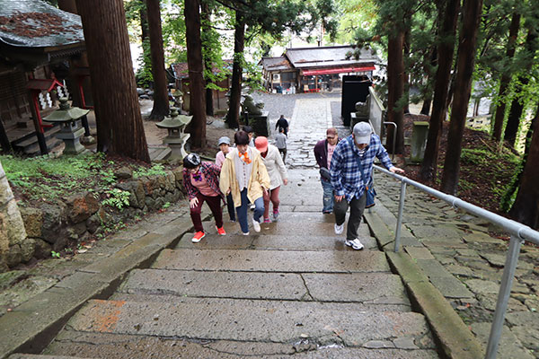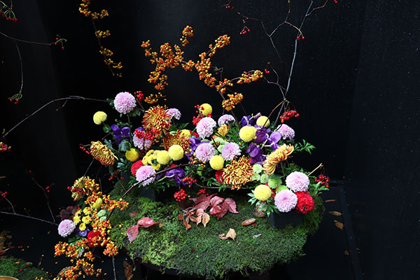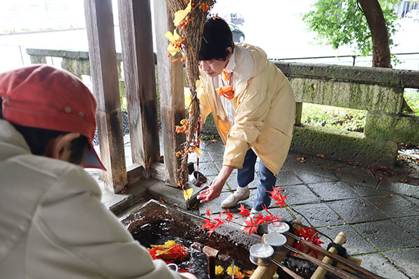 熊野大社は南陽の菊祭りの会場にもなっており、「菊人形×フラワーアート」のコラボレーションが見られ、皆「きれいだね~」「すごいね~」と、静寂な空間に異彩を放つフラワーアートに見入っていました。