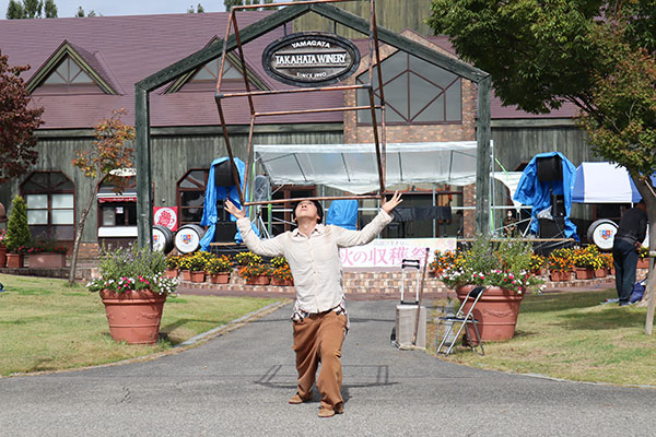 この日は前夜からの雨の影響で〈収穫体験ミニツアー〉が中止となり、残念ながら参加することは叶いませんでしたが、我々が滞在している間は青空が広がり、収穫祭を楽しむことができました。