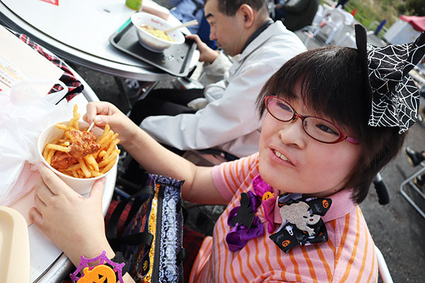 いろいろな屋台が並ぶ中、みなさん好きなものを好きなだけ選んで食べました。