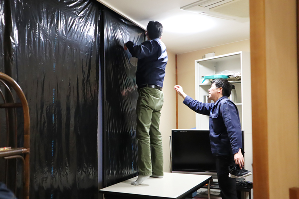 会場をどれだけ暗くできるか・・・座席はどうするか・・・職員が知恵を絞ります。