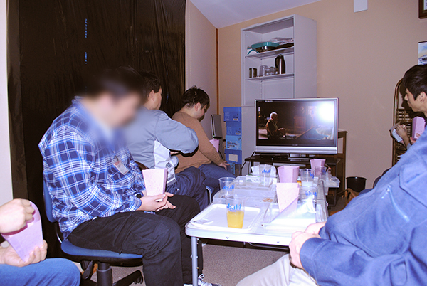 映画を見ながら暗闇で飲食するなど、公共マナーを学ぶ訓練でもあります。