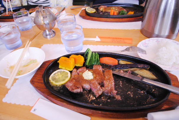 少し早めの昼食は、町の小さなレストラン。私たちのお目当ては、200グラムのステーキです。とっても美味しかったネ~!