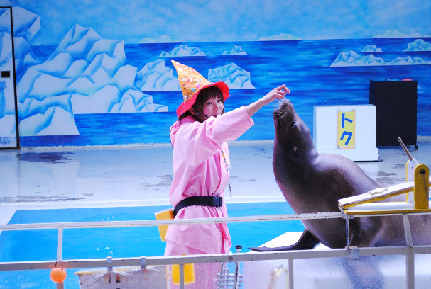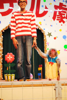 年老いたメスのお猿とノッポのお兄さんのショーは、笑いのツボがイマイチ。