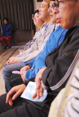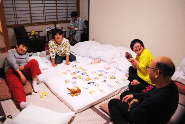 夜のメインイベントは、『生活かるた選手権大会』です。読み手は奥にいる課長。