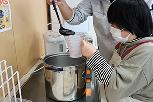 《チョコパフとフルーツ入りカラフル寒天》を作るチーム