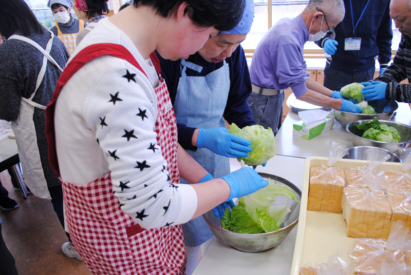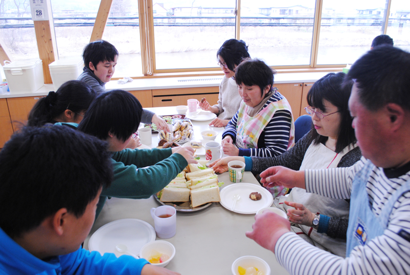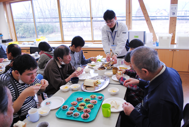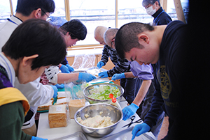 すべてのメニューが完成しました。どのグループも悪戦苦闘(あくせんくとう)しましたが、なんとか「いただきま~す!」にこぎつけました。