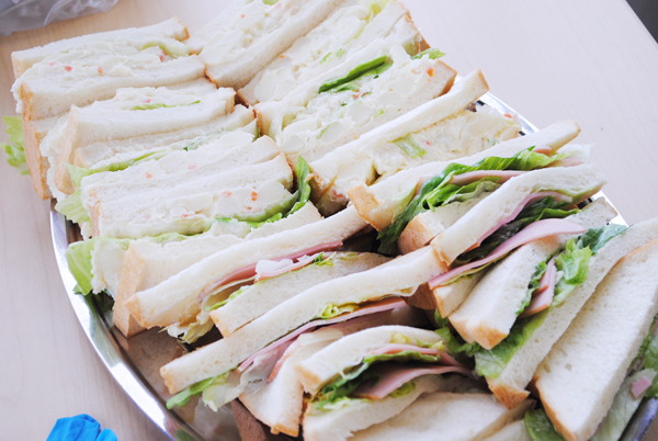 ハムサンドとポテトサンド、2種類のサンドイッチの出来上がり!