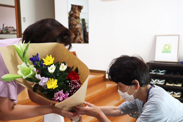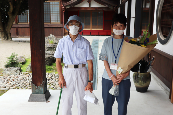 二人はお供えの花と線香などを持って行き、渡す役を務めます。