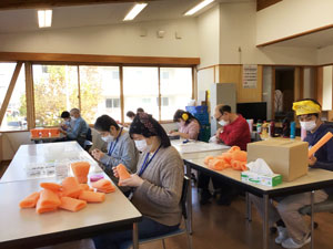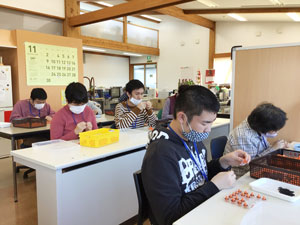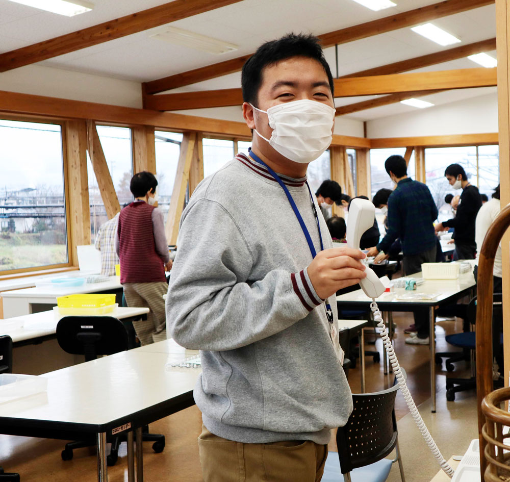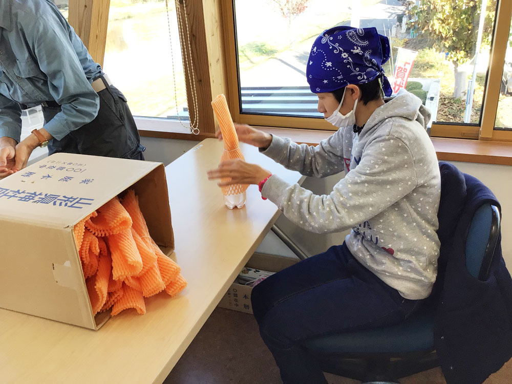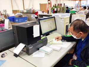 中ゴムを掛ける係、折る係、検品して外ゴムで束ねる係、最後にカウントする係、といったように細分化して作業しています。