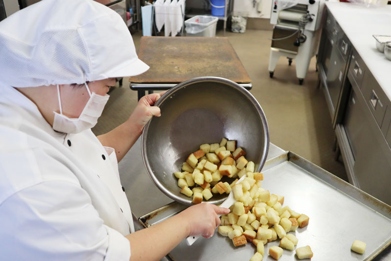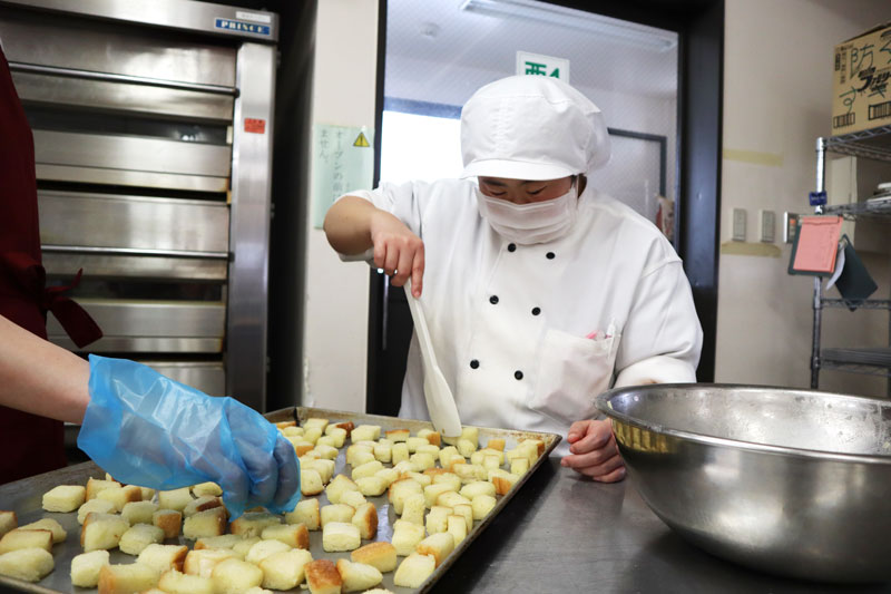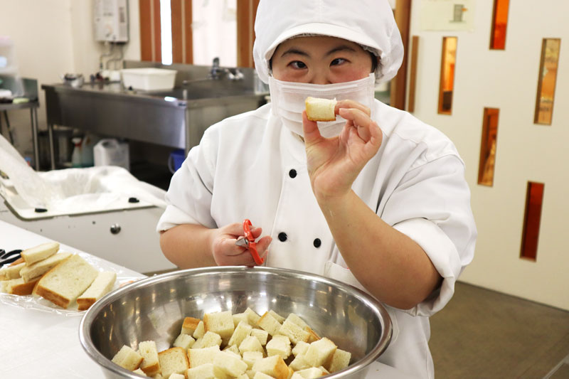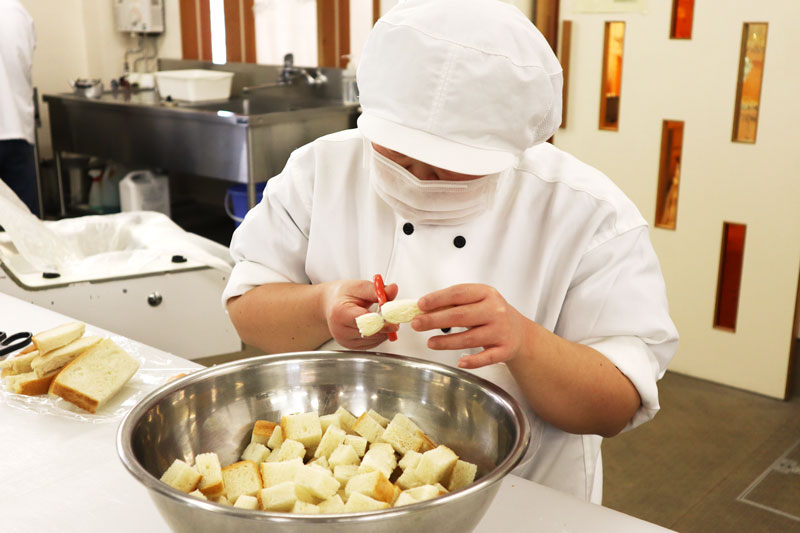 - 食パンを小さく切ります