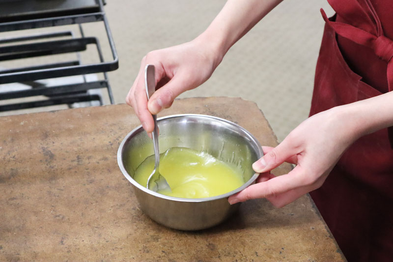 - こぼさないように少しずつ混ぜます