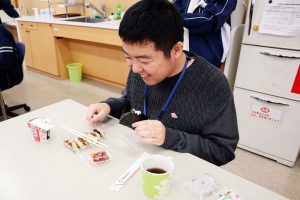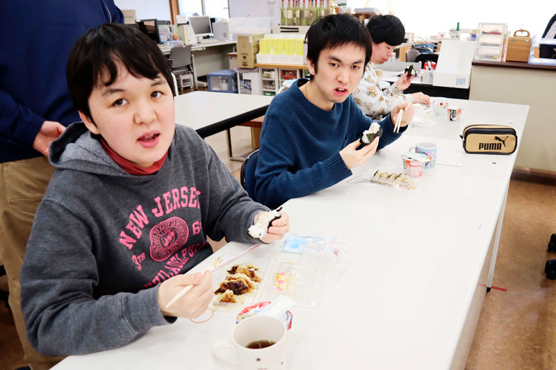 初めて食べた人、施設外のイベントで食べたことがある人、なんと「実習で行ったことがあるよ」という人も。ワークランドさんの餃子、とっても美味しかったです。他のB型事業所の商品もまた機会があれば利用したいですね。