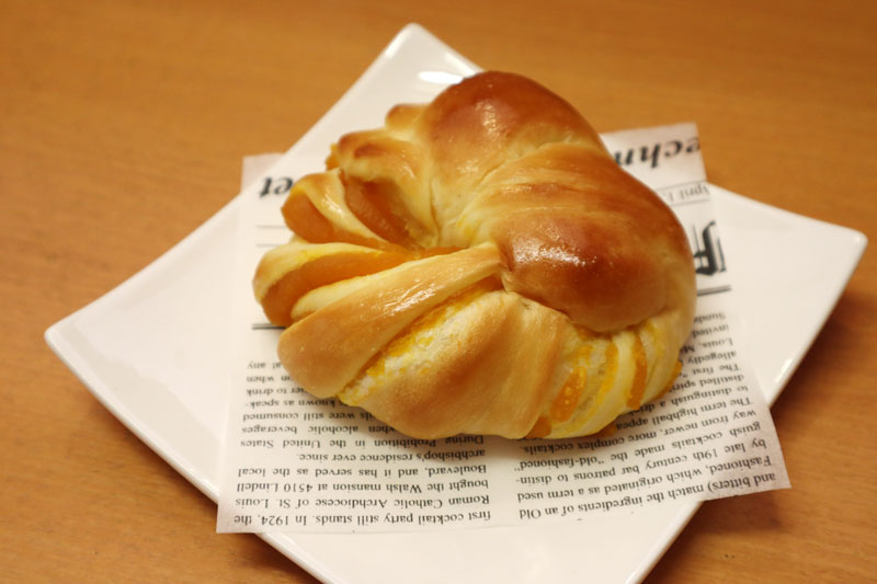 今回は「かぼちゃあんぱん」です。綺麗なオレンジ色、甘すぎないけどしっかりかぼちゃの甘みとおいしさが感じられるあんぱんです。¥160(税込) -