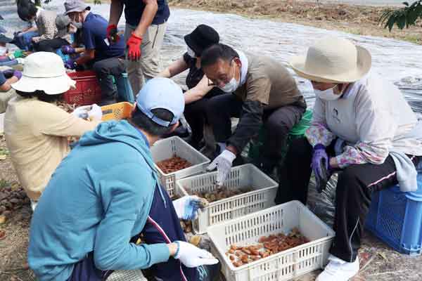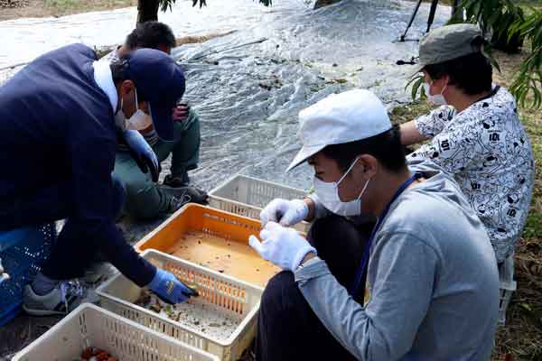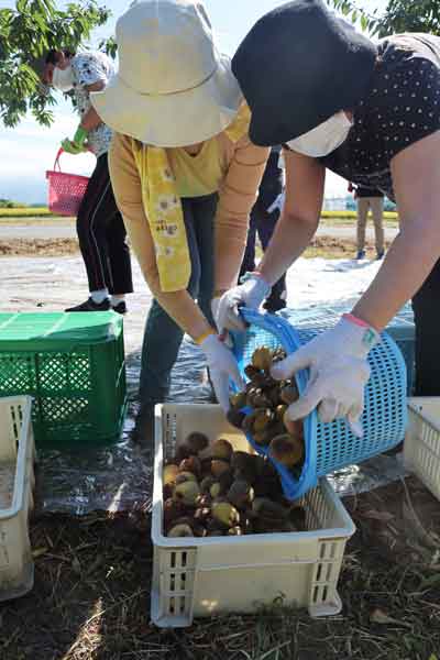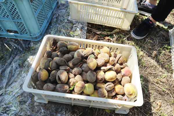 今日はここまで。この後の工程で種を割って中身を取り出し、オイルやクリームに加工するとのことです。