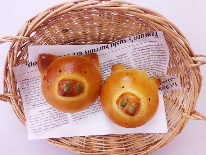 冬限定の、『ぶたぱん』になります。かわいい豚の顔でできているパンです。豚まんのような味付けで、おいしいです。中には、豚ひき肉、玉ねぎ、筍が入っています。¥160(税込) -