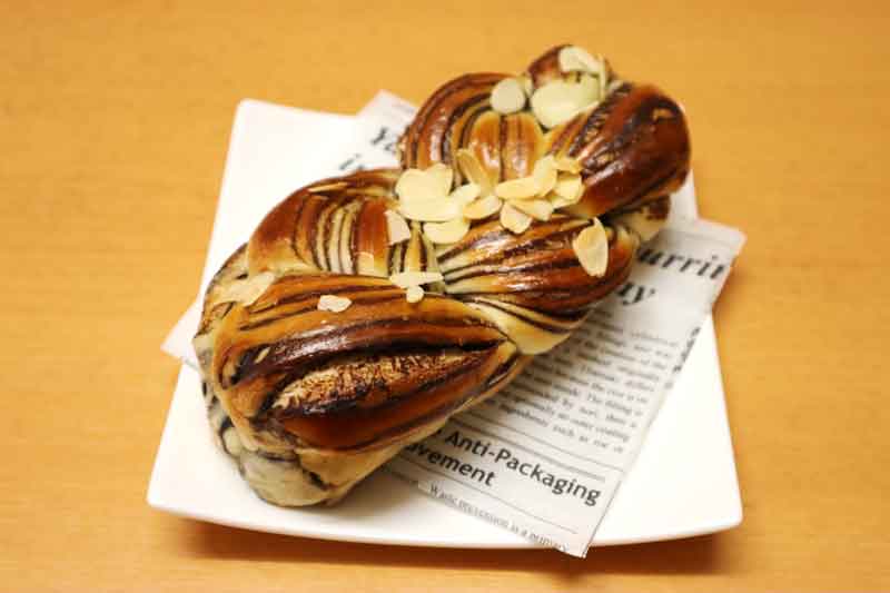 マーブル模様がきれいなちょっと大きめの『マーブルチョコパン』です。ビターチョコレートを使用、大人の味です。¥210(税込)