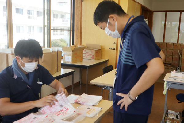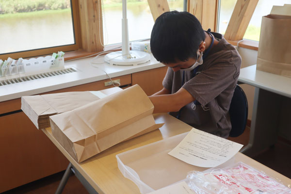 今年は8/28に大量のごみ袋が入った段ボールがコロニーセンターに届きました。作業を細分化し、わかりやすいように視覚的ツールを準備する等、みんなで責任をもって仕事をしています。