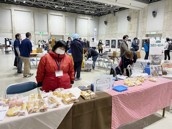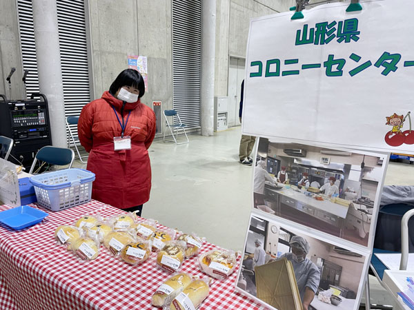 会場の一角で販売をしていましたが、足を止めてくれる方も少しずつ増えてきて利用者さんが笑顔で挨拶をすると、パンだけでなくコロニーセンターにも興味をもって話しをしてくれる方もいました。
