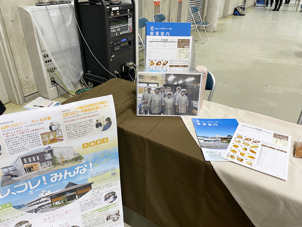 福祉のお仕事を探しに来ているたくさんの人が集まる会場の中で、コロニーセンターを含めた4事業所が自分たちで作った製品を販売しました。