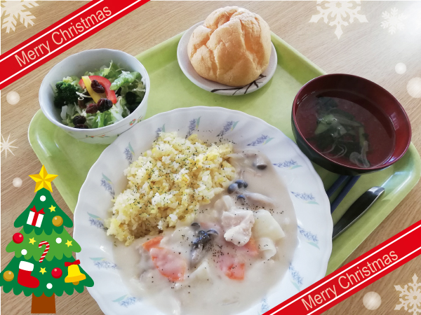 さて、今回は事業所で提供した「クリスマス行事食」を、紹介していきたいと思います。