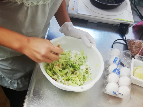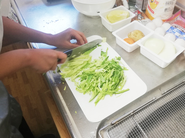 今回は利用者さんの、調理支援を行いました。 メニューは、お好み焼き・具だくさん味噌汁です。 利用者さんが土・日など休みの日に1人でも作れるようにと、個別の調理支援を行っております。