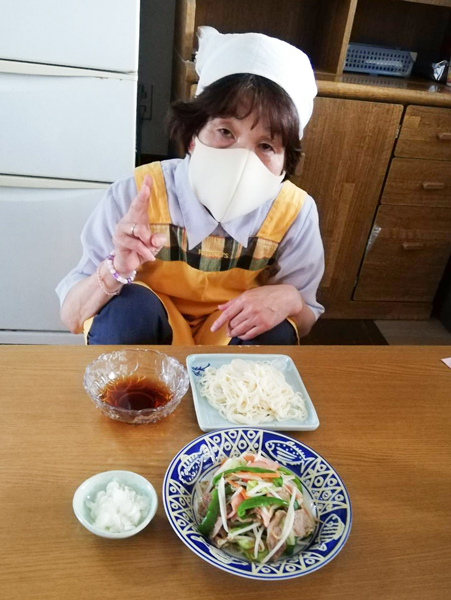今回は利用者さんの、調理支援を行いました。 メニューは、冷たいそうめん・肉野菜炒めです。 利用者さんが土・日など休みの日に1人でも作れるようにと、個別の調理支援を行っております。