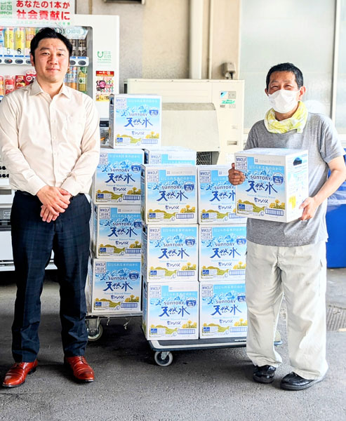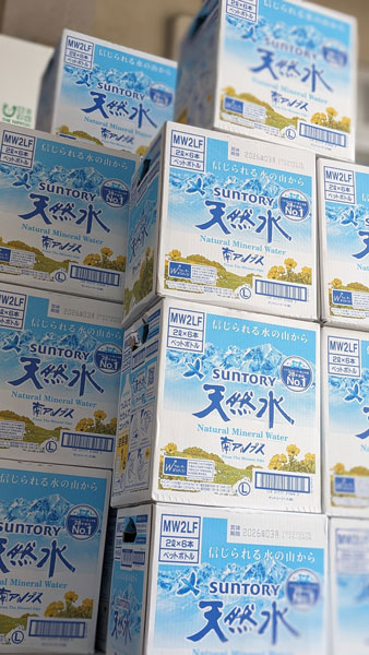 サントリービバレッジソリューション株式会社様より、山形県コロニー協会に災害用防災用品としての飲料水(2ℓペットボトル×6本入を20箱)のご寄付を賜り、誠にありがとうございます。