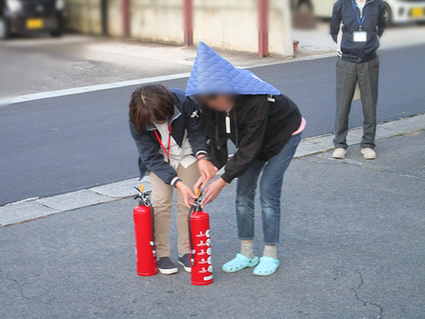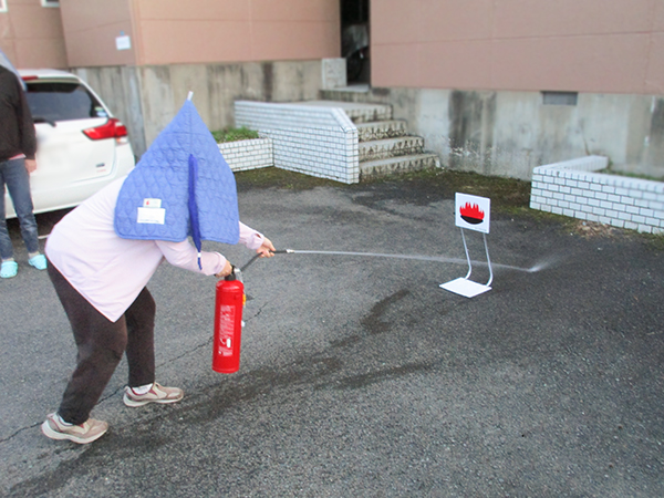 グループホームで火災が発生した場合の通報の方法や避難方法、消火の訓練を行ない入居者の方の防災の意識や安全確保の方法等を体験する良い機会になりました。