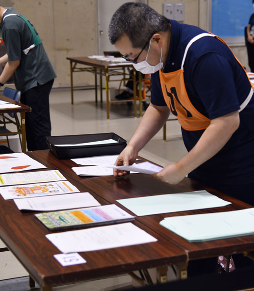 一方、オフィスアシスタント種目は、6種類の送付書類のピックアップ、封入作業で正確かつスピーディーに仕分けていく作業です。大会のために朝早くから毎日練習を重ねてきました。