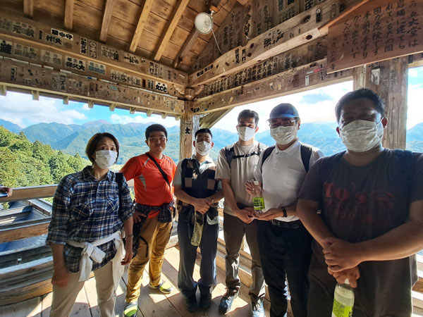 全員で集合写真 所長より山寺の後利益、魅力についてお聞きしました。