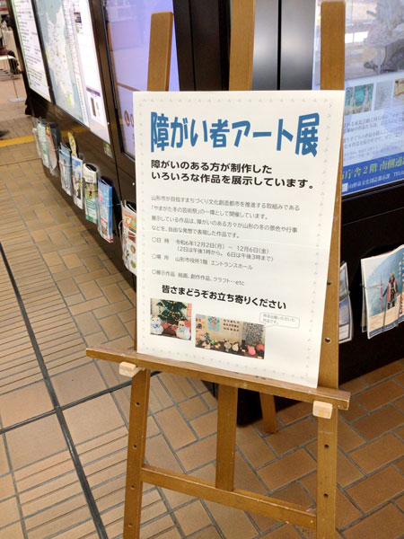 令和6年12月2日(月)から6日(金)まで、山形市役所1階エントランスホールにて、「障がい者アート展」が開催されました。