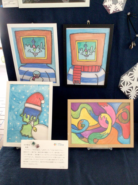 冬をモチーフに、マジックと絵具でユーモアたっぷりに描いてくれました。