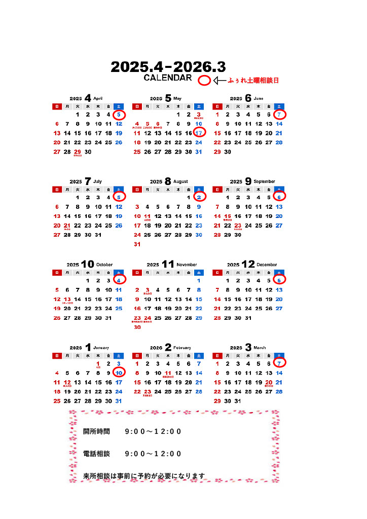 土曜日相談希望の方はご確認のうえ予約をお願いします。