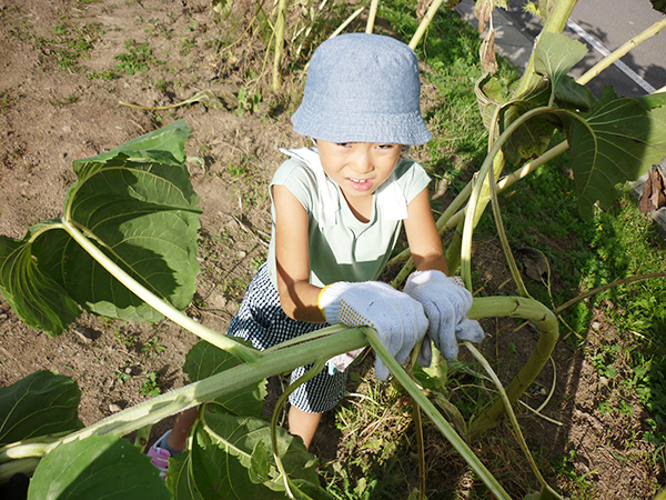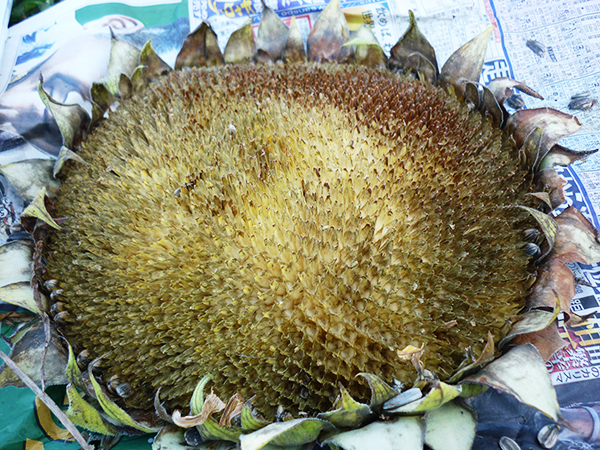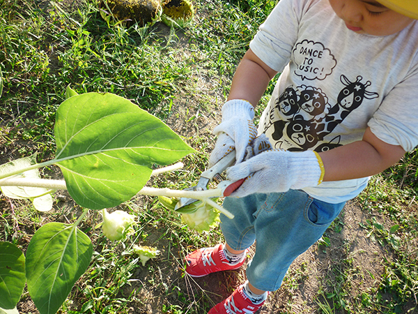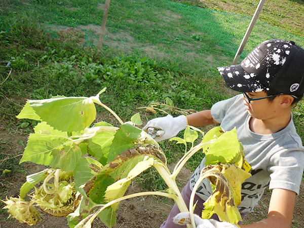 暑いなか咲きほこった【ひまわり】の日々成長する様子に元気をもらいました。 みんなで感謝を込めてひまわりを抜き 種取りを行いました。