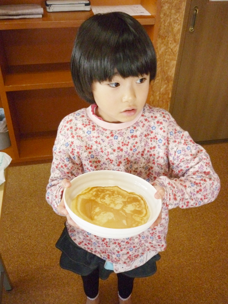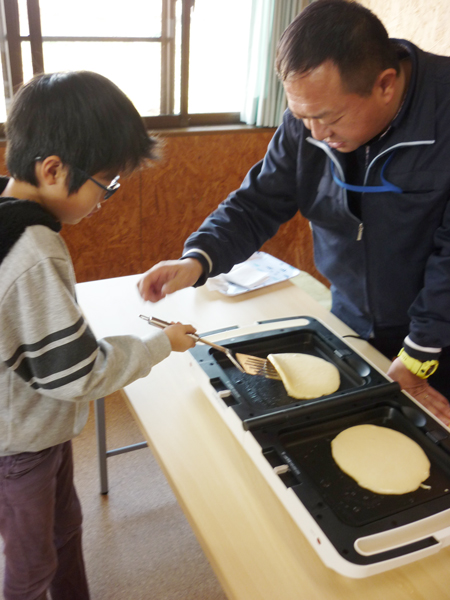 自分たちでテーブルやお皿の設置をし、ホットケーキを皆で焼きます。