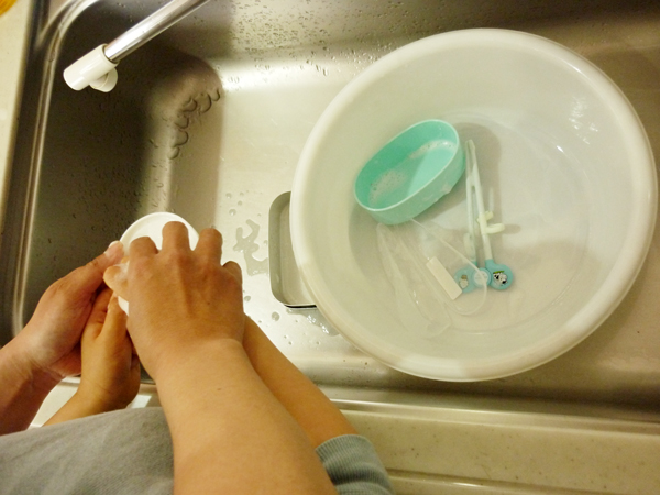 生活練習の一環として(お皿洗いと称して)弁当箱洗いを頑張りました。
