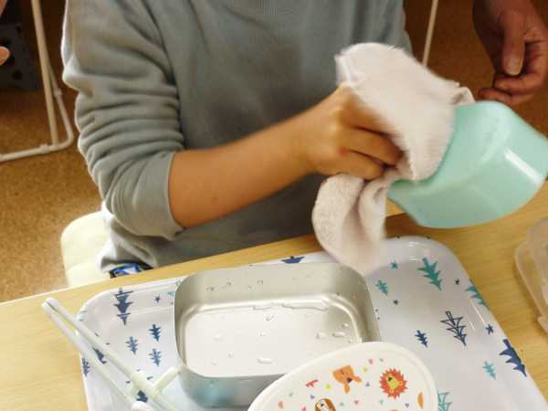 洗い終わったら次は弁当箱拭きです。