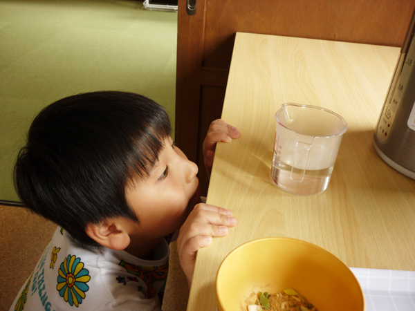 熱いから気をつけて注ぐよ。よく出来ているね✨