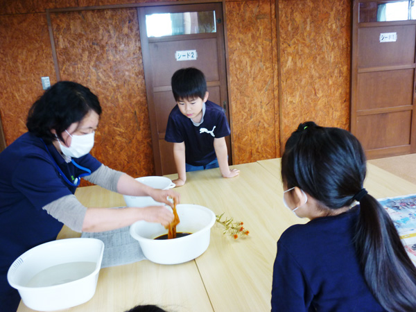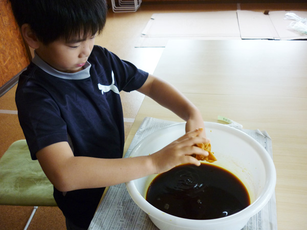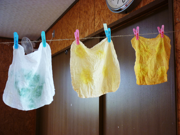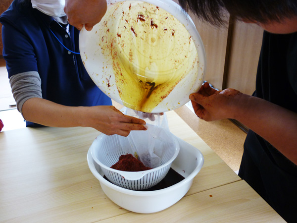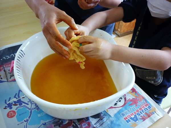 9月26日土曜日。 今月の特別開所では、6月に子どもたちと植えた紅花を使い紅花染めをやってみました。