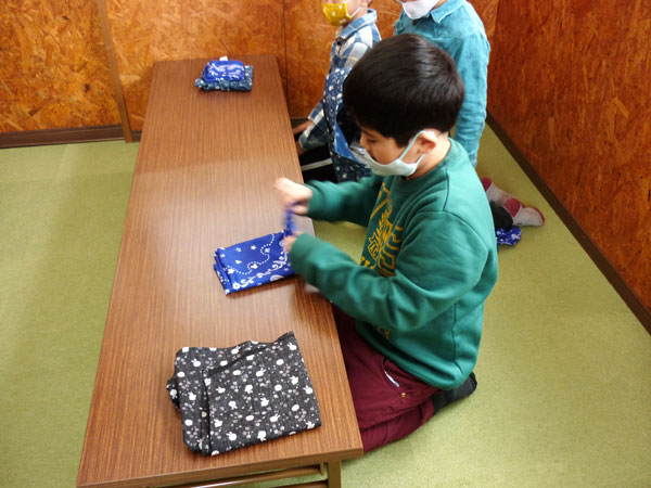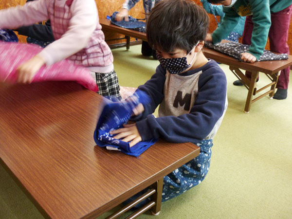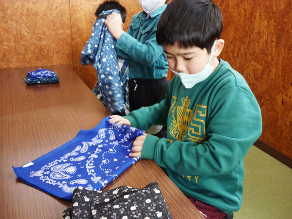 エプロンやバンダナを身に付ける過程では、結び方やたたみ方がといった生活スキルが求められてきます。
