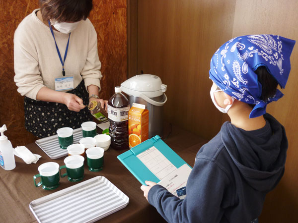 子どもたちは『シードカフェ』に向けて、1か月前から接客の練習に取り組んできました。お店屋さんのやり取りはもちろん、お店屋さんとしての身だしなみも一緒に確認しました。