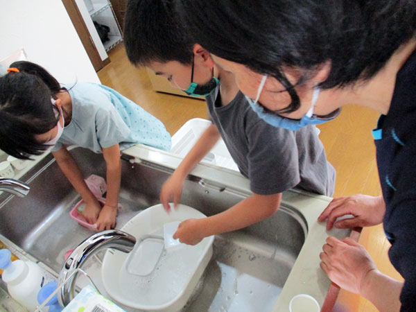 自分の食べたお昼のお弁当は自分で洗います。